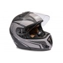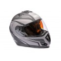 Snøscooterhjelm på sitt aller beste! Denne modularhjelmen har ripebestandig dobbelt antidugg visir og man kan kjøpe med elektrisk visir. Det følger med to visir i pakken, enkelt og dobbel. Hjelmen er godkjent for veibruk med enkelt visir. Det er pustemaske integrert og det gule solvisiret gir maks kontrast mot snøen.