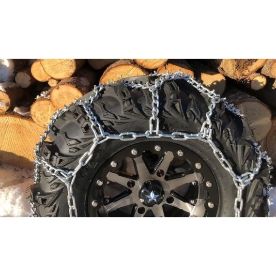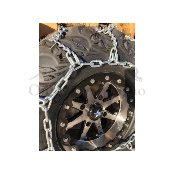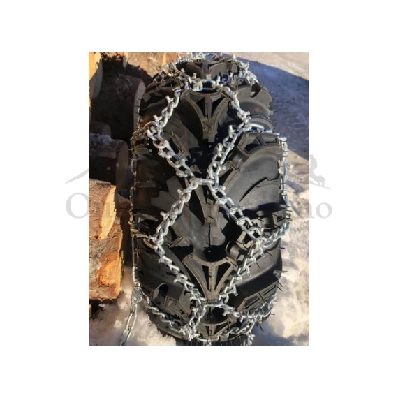 ATV-Kjetting produsert i solid spesiallegert 6mm stål i kryss (diamant m/pigg). (69"x 18"/175 x 46cm) Leveres i par i solide sekker.