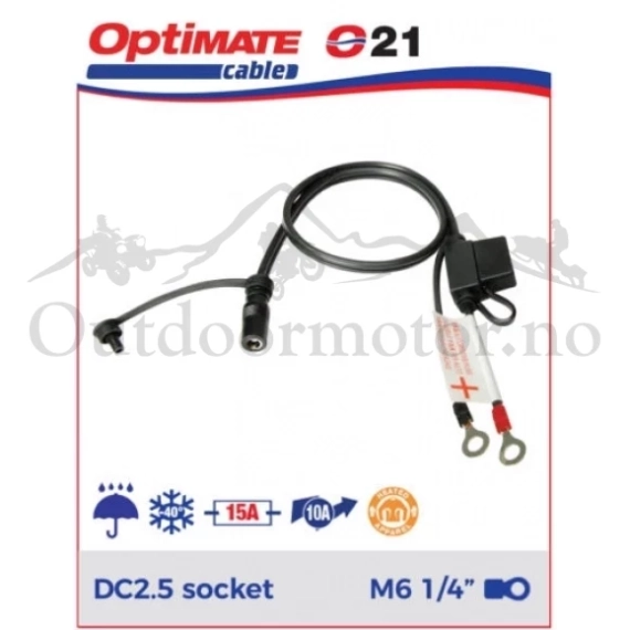 Batterikabel til DC2,5 hurtigkontakt. DC2,5. Til f.eks: Varmeklær og varmevisir
