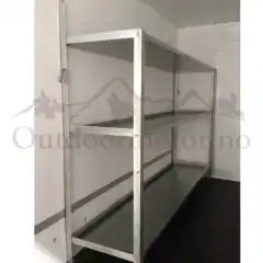 Praktisk sammenleggbart hyllestativ for montering på vegg. Leveres i en og to meters lengder. 48 cm dyp