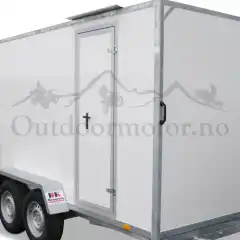 Denne kan bestilles med to dører bak (cargodører) eller oppkjøringsrampe. Utvendige støttebein bak på sider er standard, men det kan monteres saksebein slik det er på campingvogner. Av ekstrautstyr kan nevnes side/front dør, strøm (12V-220V) vingedør ( salgs bod) hyllestativ, m.m. Full ståhøyde. Hengeren er isolert, veggene er 28mm tykke, styrofoam belagt med glasfiber matter.