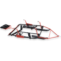 Høydejusterbar og opp 5cm over skihøyde. Skjær er vendbar og utskiftbar. (skrudd). skjær er stilt 45grader vinkel for å hoppe/flyte over sten/hindringer. Fremre ski går i skisporene til scooteren for mindre motstand