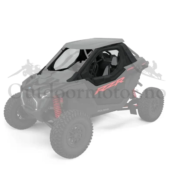 These 2-Seat Upper Doors enhance rider comfort during your off-road adventures. Designed to withstand long rides on trails, they effectively keep out dust, wind and cold weather. The high-quality compression molded doors nest seamlessly into thermoformed high-density polyethylene side shrouds, ensuring an excellent seal. The doors feature magnetic close latches, steel powder-coated door frame weldments and a basic cab seal kit, which provides added roll-over protection. The kit includes one set of front upper doors, complete with zip-down 30-gauge clear vinyl windows featuring #10 zippers. Before purchasing, verify compatibility with your specific RZR model. Recommended with a Full Glass Windshield (2890378) and Lock & Ride Poly Rear Panel, (2890383), both sold separately.