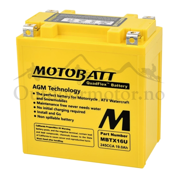 Motobatt Quadflex er et AGM-batteri (absorbert glassmatte), med det første, unike og patenterte 4-polsystemet. Takket være dette dekkes hele 238 OEM-delenummer med bare 38 Motobatt-batterier, som gir opptil 30% mer kraft sammenlignet med andre batterier.