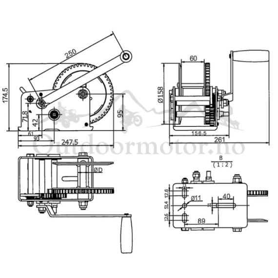 Vinsjen er laget for bruk med bånd. Den leveres uten, så husk å kjøpe bånd og båndpinne i tillegg. 71 mm båndpinne og 48 mm bånd passer denne vinsjen.