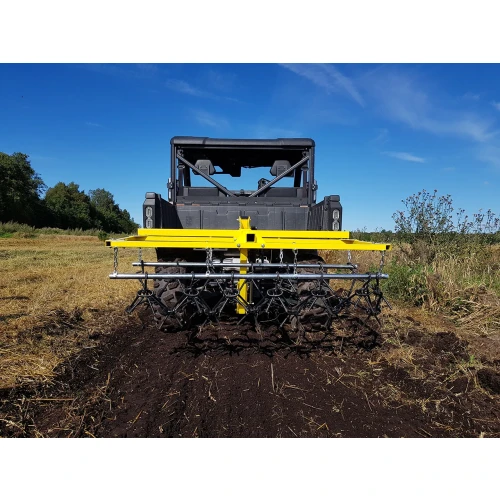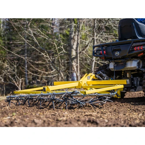 Har kan du harve ridebanen, rake tunet, lufte beitet, eller jevne ut ujevnheter i hagen eller på beitet.