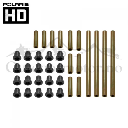 Beskrivelse HD Suspension Bushing Kit er en komplett oppgradering av fjæringen foran og bak. Den avanserte materialsammensetningen i bøssingene muliggjør strammere toleranser for å redusere generell slitasje på systemet, mens den overlegne trippelleppetetningen forhindrer inntrenging av elementene. Dette settet forlenger levetiden til bøssingen og dreieakselen for å holde syklistene gående. Oversikt og spesifikasjoner Andre spesifikasjoner Bøsninger og aksler både foran og bak på indre og ytre a-armer