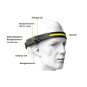 Lett oppladbar hodelykt med tynt design. Sitter godt på hodet slik at den er velegnet til trening/løping. LED stripe i front og LED spot på siden. Kan også styres med bevegelsessensor. Flere lys-innstillinger. Lysstyrke: 350/150/60 lumen. Brukstid: 2,5/5/8 t. Ladetid: 2,5 t. IPX4. Vekt: 70 gram. Ink. USB-C kabel for lading.