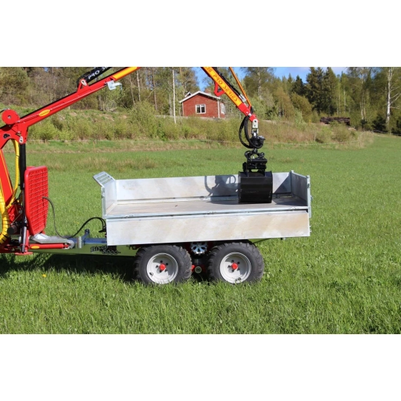 I botten finns det en 12 mm vattenfast plywoodskiva. Vid transport av grövre material rekommenderar vi vår galvaniserade slitplåt.