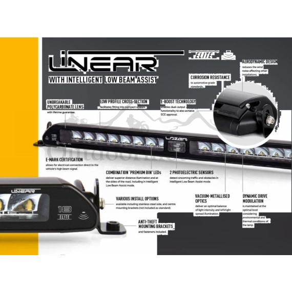Lazer Lamps er anerkjent som en av verdens ledende innen utvikling og produksjon av LED belysningsprodukter for bilindustrien. 100% Laget i Storbritannia. De høyeste ytelsene på markedet ved bruk av de beste komponentene som er tilgjengelige. Svært effektiv LED-teknologi innebygd. 5 års garanti på alle produktene. Veiledende og fullstendig testet av British Standards Institute (E9 / 11 Certified). E-merket og anerkjent av FIA. ECE testet for robusthet og ytelse. Fargetemperatur på lysdiodene nøye valgt for å maksimere definisjonen, mens du reduserer belastningen som kan komme fra høyere (blå / hvit) lystemperatur. IP67 / IP69 vanntett til 1m. RS-serien har integrerte kjørelys. Skreddersydde festebraketter og lysstangsystemer gir stilig bilintegrasjon.