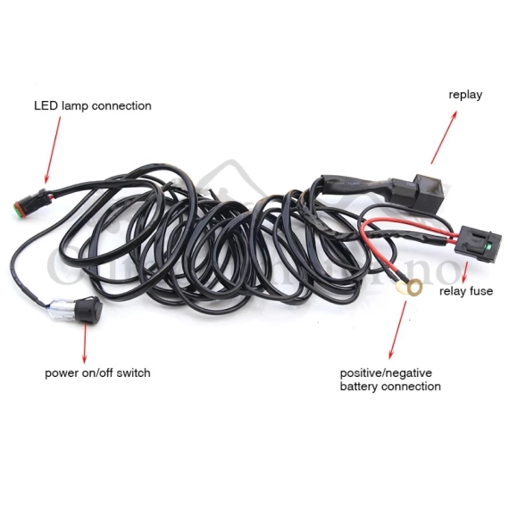 Kabelsett for 2 Ekstra lys med Sikring, Rele, bryter og 2 DT kontakter