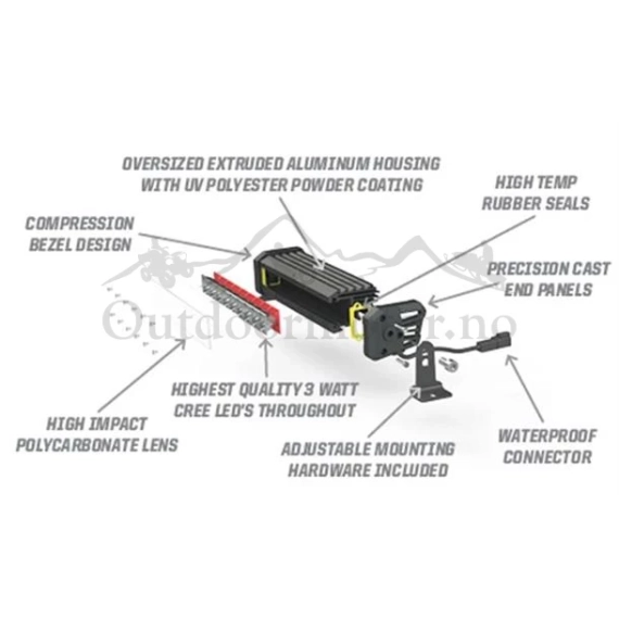 Pro Armor lysstenger er robuste og holdbare for å gi overlegen ytelse. Disse lysene ser tøffe ut og er testet tøft. Ekstra stor varmesynkronisering gir langvarig, mer effektiv ytelse og det robuste aluminiumshuset beskytter mot ekstreme forhold som terrengkjøring kan diske opp. En bruddbestandig polykarbonatlinse kjemper mot alt som kommer på den, og det forseglede IPX67-klassifiserte huset holder vann og støv ute. Flomoptikk for å gi det bredeste tilgjengelige strålemønsteret. Lys opp verden, sanddynene eller stien med Pro Armor-belysning.