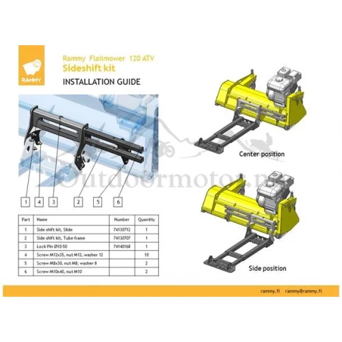 Rammy Side shift kitt til Beitpusser Flail Mower 120 ATV 120cm bredde