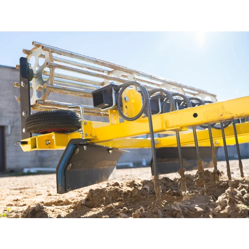 Kraftig og fleksibel ridebaneharv / groomer for alle typer underlag. Harvtenner med justerbar arbeidshøyde for korrekt bearbeiding av bunnen.