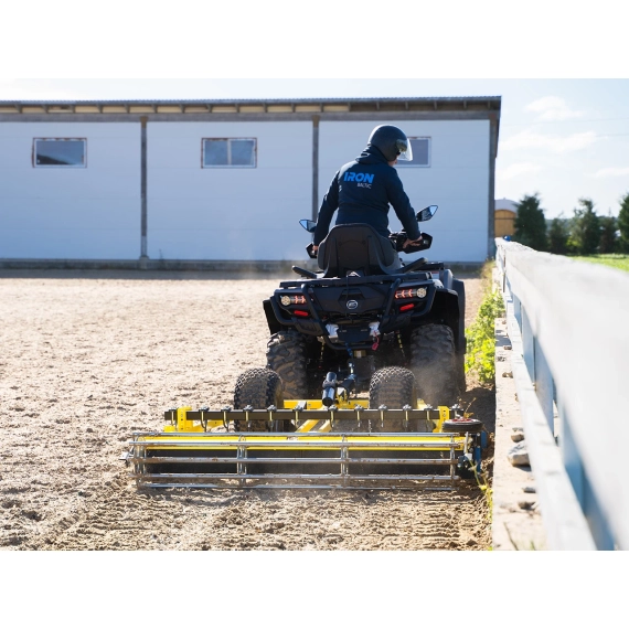 Kraftig og fleksibel ridebaneharv / groomer for alle typer underlag. Harvtenner med justerbar arbeidshøyde for korrekt bearbeiding av bunnen.