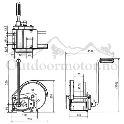 Vinsjen kan utstyres både med wire og bånd, men leveres med 12 meter 7 mm tykk wire.