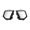 Now your hands can stay warm too with these side mirrors. These mirrors mount on the side panel to allow the use of either handguards or gauntlets and provide the rider with a clear view of the conditions behind them. So whether you're riding with buddies you can keep an eye on what's behind you and ride with confidence.