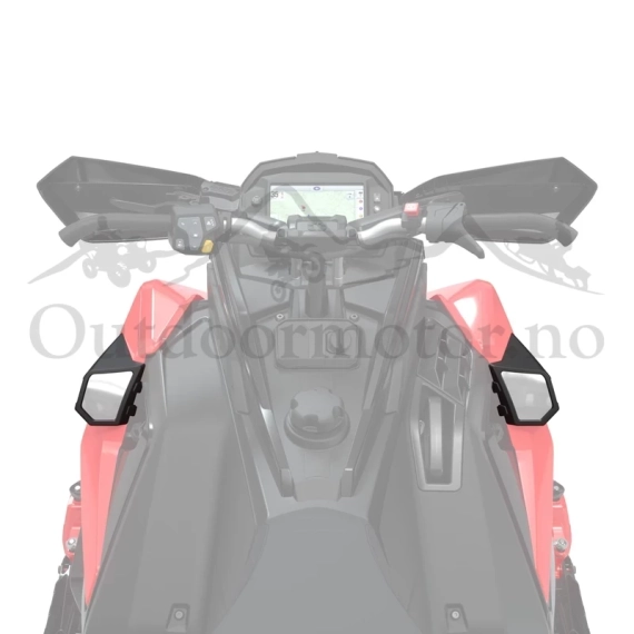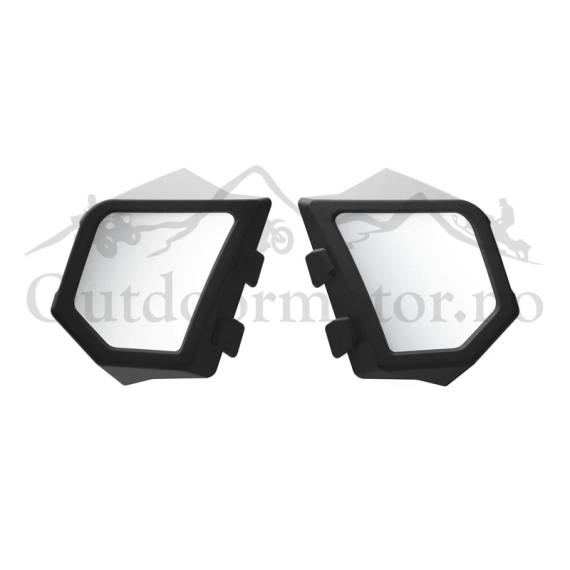 Now your hands can stay warm too with these side mirrors. These mirrors mount on the side panel to allow the use of either handguards or gauntlets and provide the rider with a clear view of the conditions behind them. So whether you're riding with buddies you can keep an eye on what's behind you and ride with confidence.