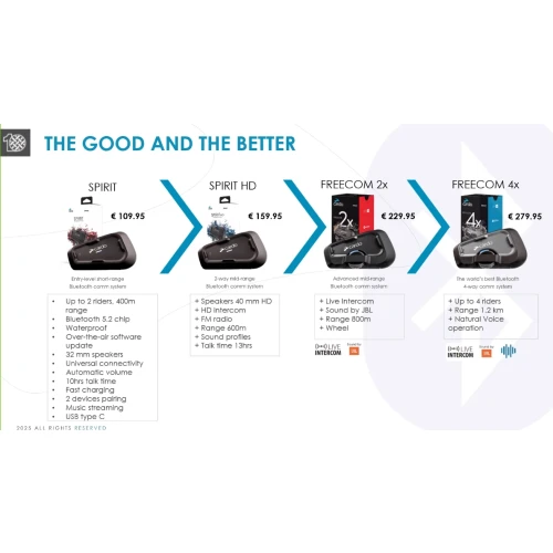 SPIRIT SINGLE Cardo 2-Veis Bluetooth intercom / med rekkevidde opp til 400m. Komplett sett til 1 hjelm