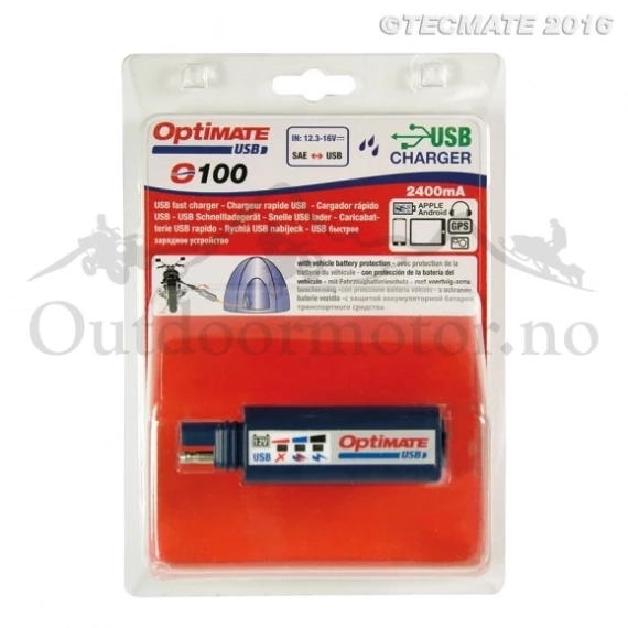 USB uttak / lader kobles til SAE plugg med innebygget indikator for batteri overvåkning!