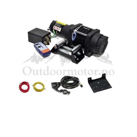 - Komplett vinsj med festeplate, ledningsnett, bryter som monteres på styret og trådløs fjernkontroll